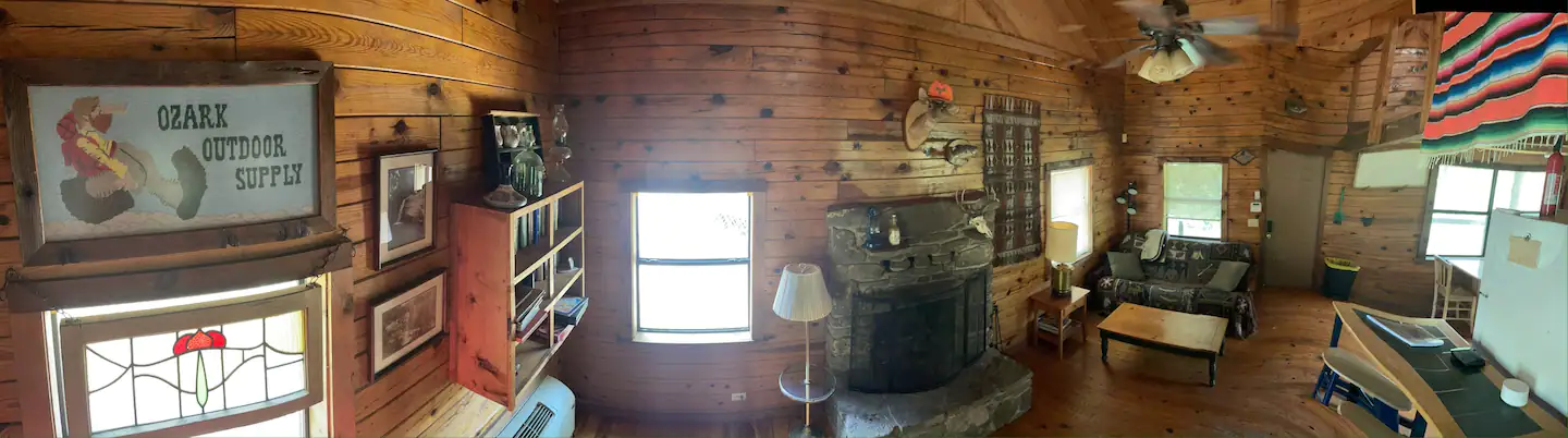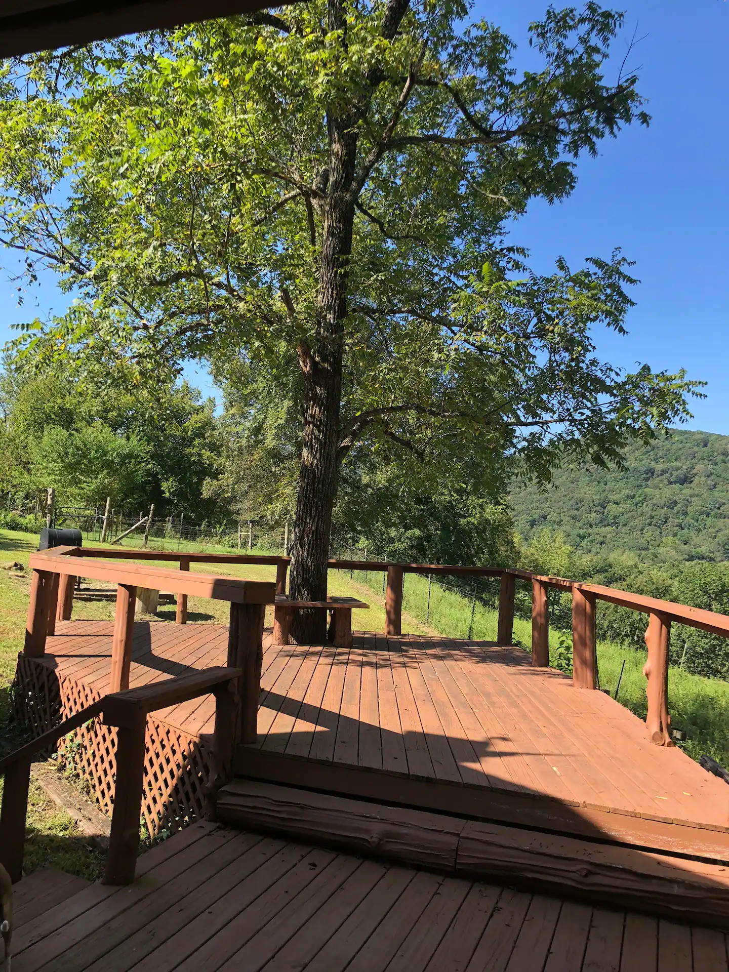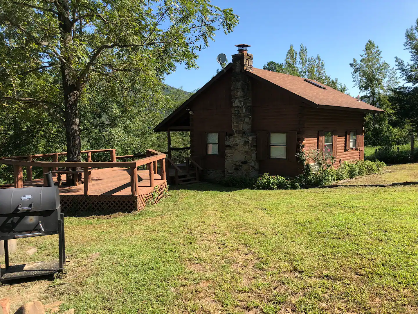The cabin is surrounded by the Ozark Mountains. Spend time exploring the wilderness, swimming in our creek, fishing, hunting, and more.
